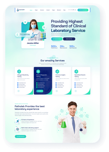 With Patholab you can easily create your own complete website. The inner pages have been optimally designed and arranged to serve your needs.
