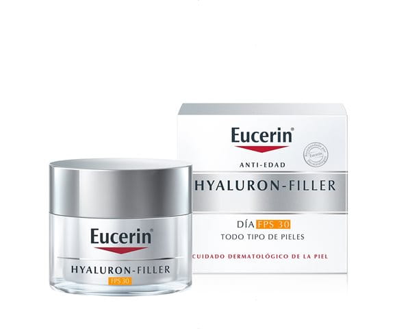 Eucerin Hyaluron-Filler 3x Effect Crema de Día FPS 30 aborda los primeros signos de envejecimiento en la piel seca. Rellena notablemente las líneas de expresión e incluso ayuda a rellenar arrugas profundas para conseguir un aspecto rejuvenecido. Previene eficazmente el fotoenvejecimiento inducido por los rayos UV (envejecimiento prematuro de la piel causado por el sol), ayuda a disminuir la profundización de las arrugas y protege la piel de los radicales libres.
