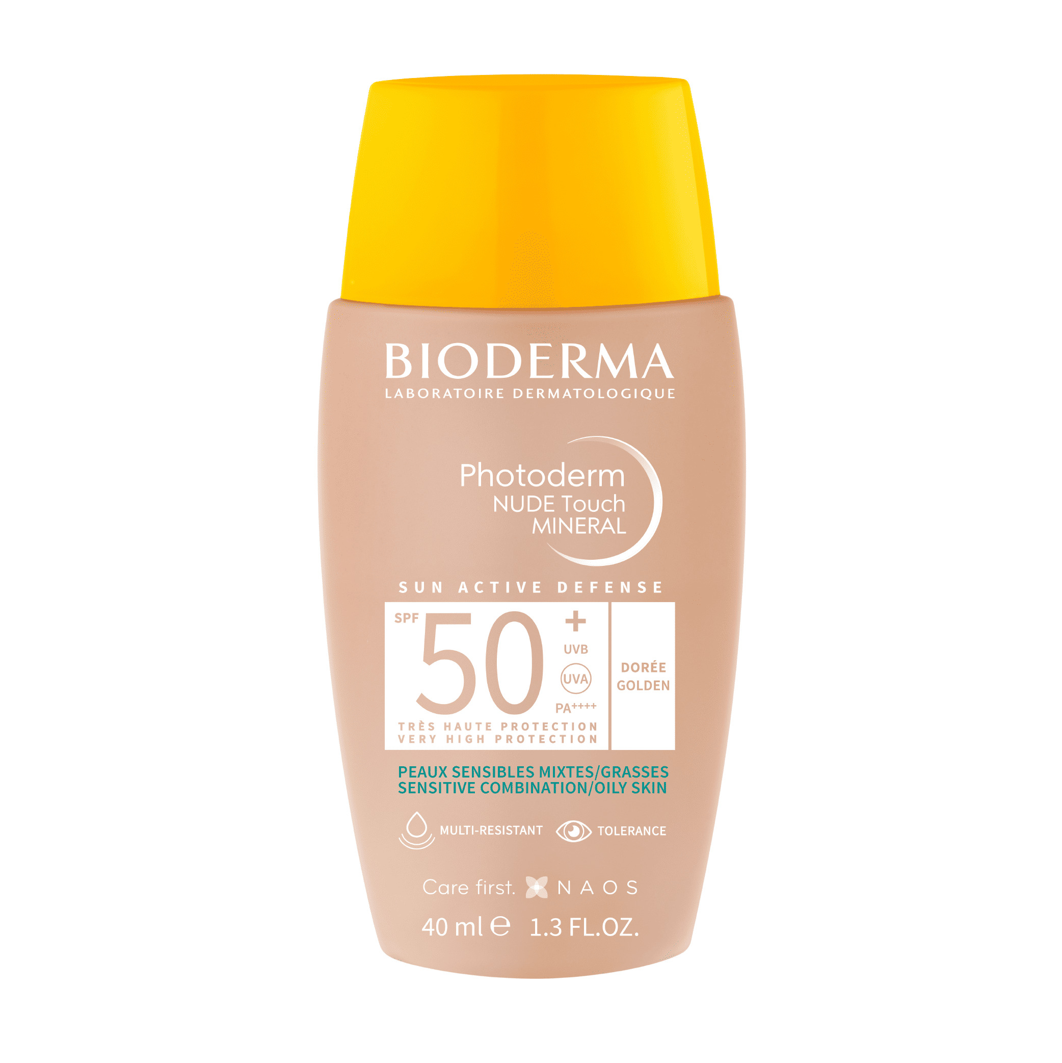 NUDE Touch SPF 50+ tono dorado: Protector 100% mineral para pieles mixtas y grasas. El efecto matificante perdura después de 8 horas.*