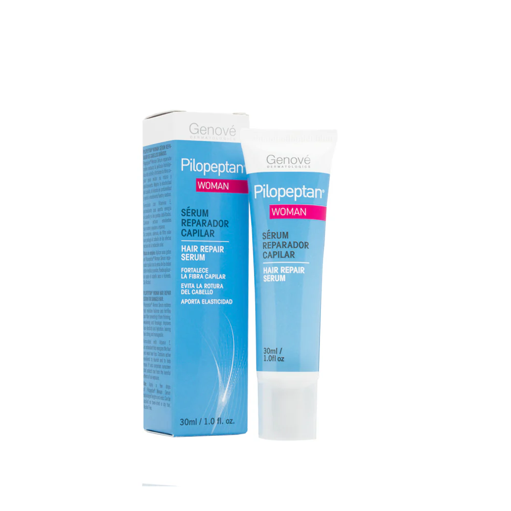 Refuerza y repara la fibra capilar. Proporciona una textura sedosa y brillante Evita la caída del cabello por rotura de la fibra capilar. Aporta elasticidad y peinabilidad. Modo de uso: Aplicar unas gotas de Pilopeptan ® Woman Serum Reparador Capilar con la yema de los dedos sobre medios y puntas. Puede aplicarse sobre el cabello seco o húmedo.