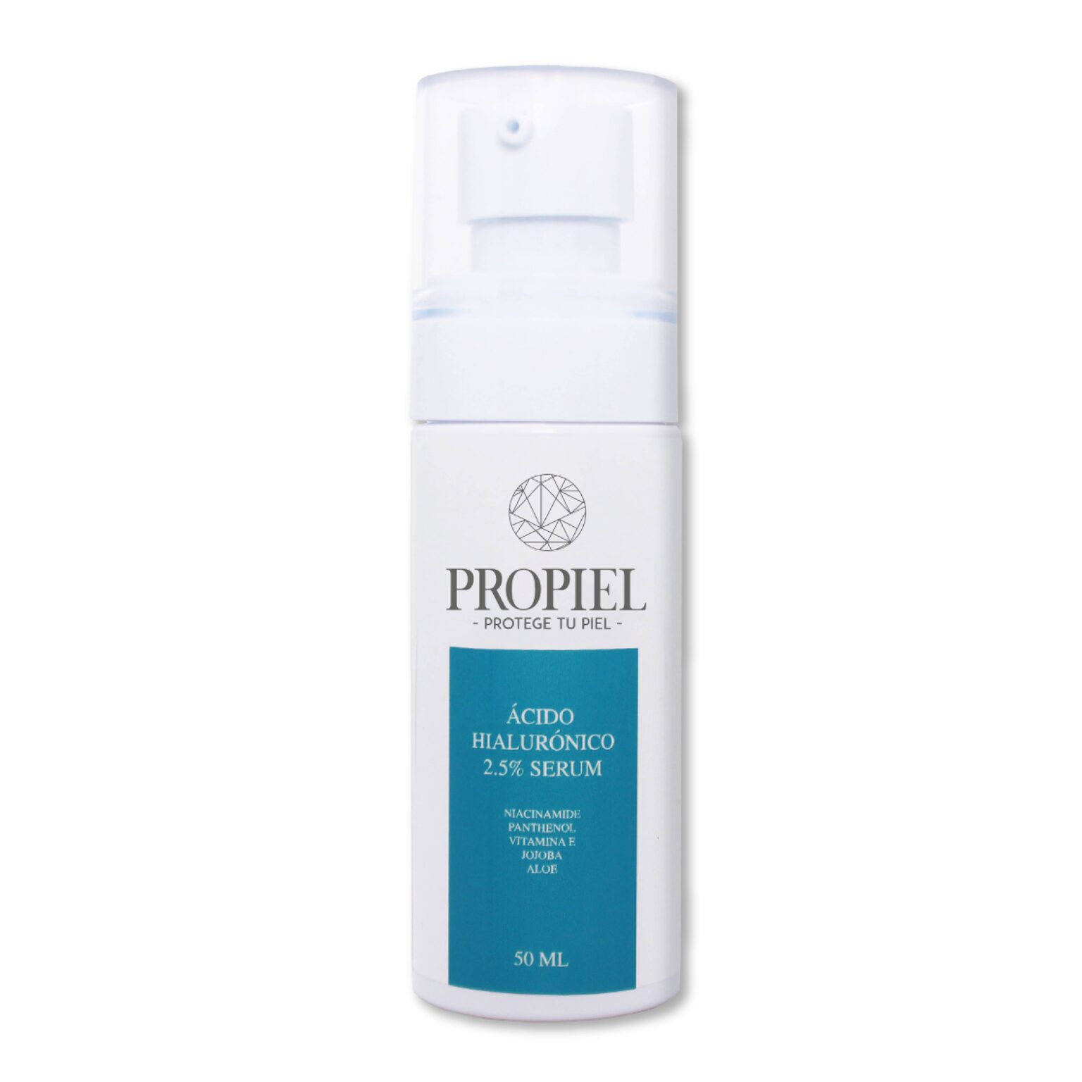 Propiel ácido hialurónico al 2,5% Serum: ¡Hidratación profunda en una sola gota! Nuestro sérum de ácido hialurónico es tu aliado perfecto para combatir la deshidratación y recuperar la firmeza de tu piel.