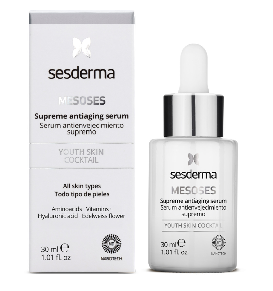 Serum liposomado con activos que previenen y actúan sobre los signos o manifestaciones del envejecimiento cutáneo que son comparables a los utilizados en mesoterapia, pero sin tener que recurrir a las agujas.
